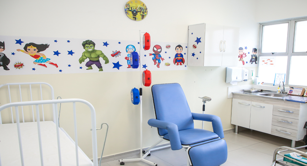 Agora, a ala pediátrica do PS Santo Antônio possui consultório, área para inalação infantil, sala de medicação infantil e espaço para acompanhantes/responsáveis das crianças. Os ambientes receberam novo layout com decoração com personagens de desenhos, mobiliário e ar-condicionado.