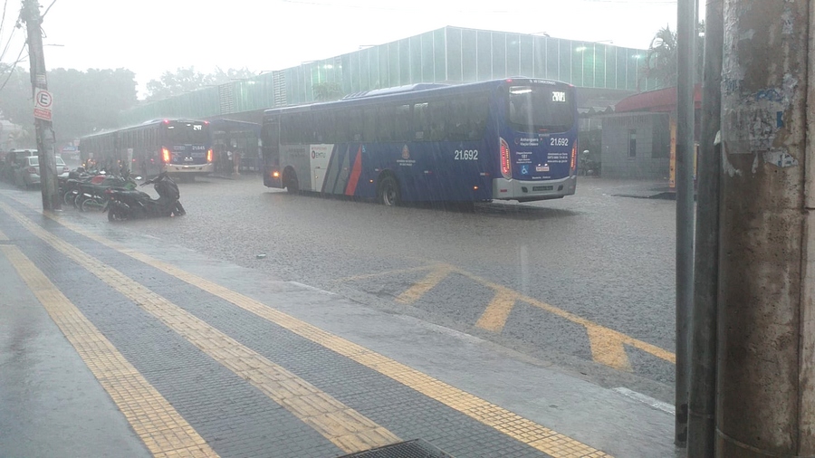 A forte chuva que atingiu a cidade de Jandira, na Grande São Paulo, na tarde desta quarta-feira (09/03), durou pouco mais de 30 minutos, mas foi o suficiente para provocar alagamentos na região central da cidade.